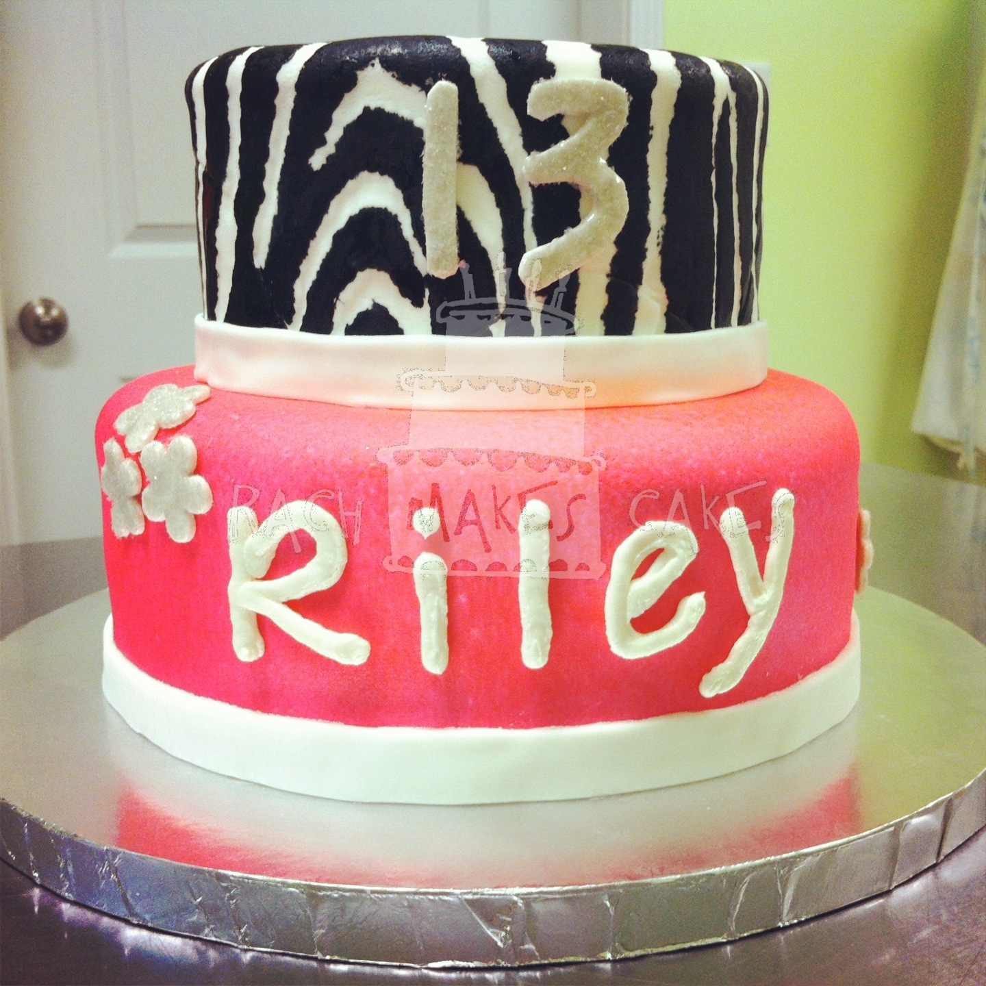 A pink and zebra print cake is all you need to celebrate a girl’s 13th birthday. Check out the cake I made for Riley:
