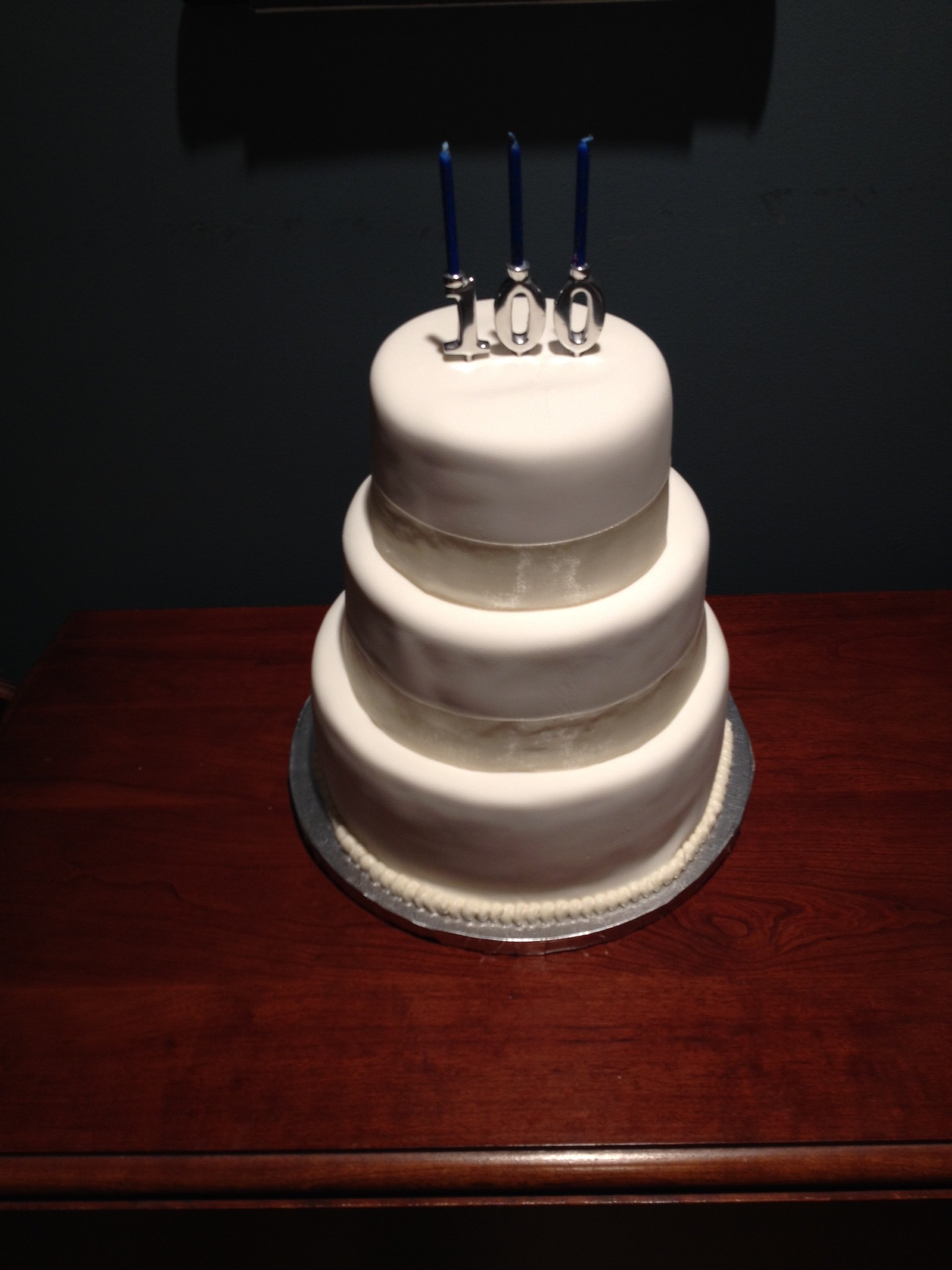 We were already planning on using the silver candle holders. They found the ribbon at the house and Trav piped the border along the bottom tier. I think it turned out wonderful! A simple, elegant design never fails. Fun fact: Tracey had to buy 2 sets of candle holders, just so we could have two zeros.