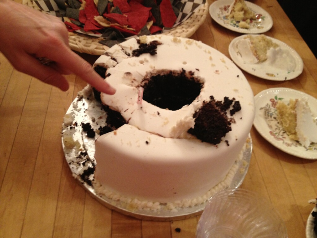 I called Trav with the sad news and also told him that he’d need to finish the cake by himself. I didn’t really hear from him except text messages asking how I was feeling. The next thing I know, I get this picture via text: