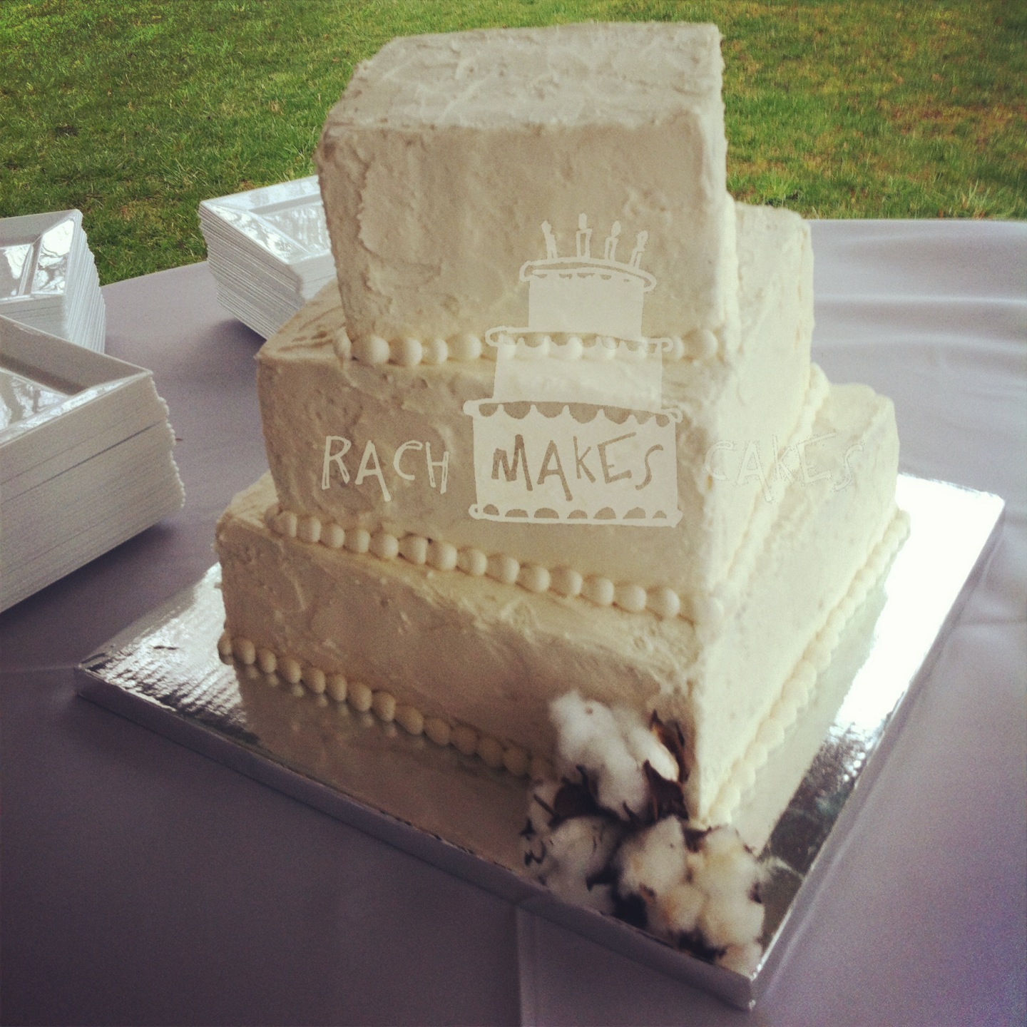 April 28, 2014 By rachmakescakes Cotton Wedding Cake This simple cake was perfect for Sami and Jayson’s rustic, Southern wedding. Tweet Pin It