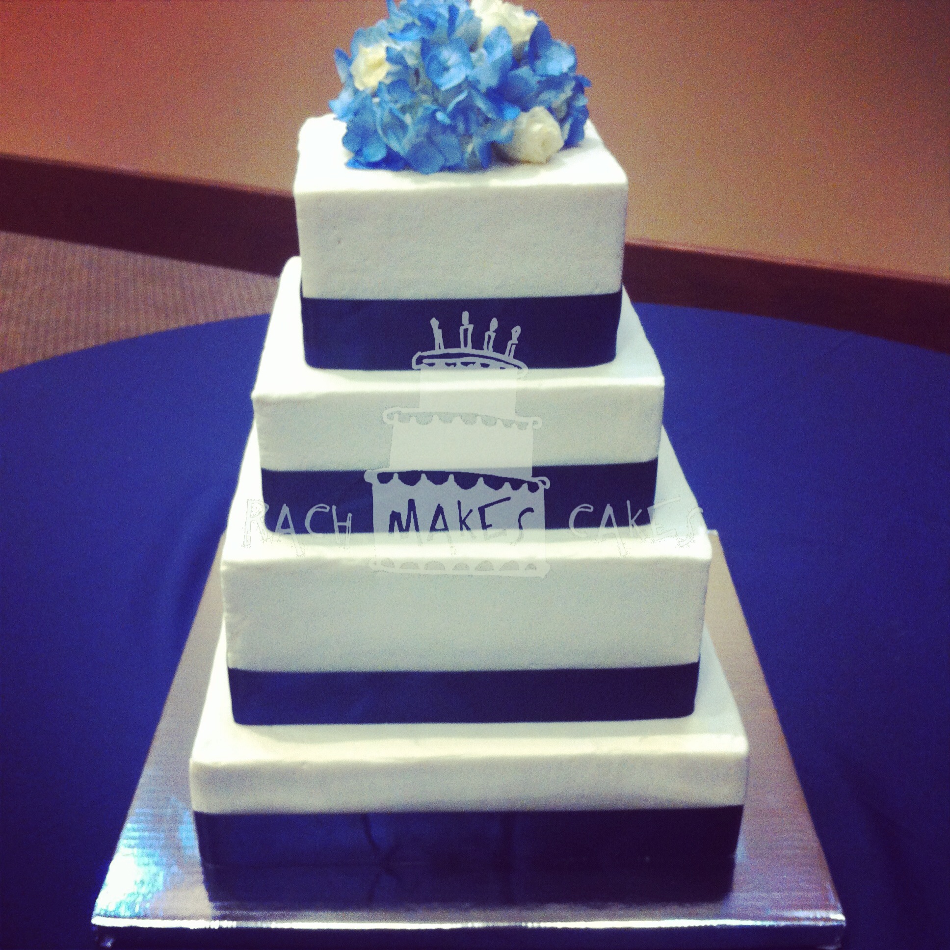 I won’t lie, icing a square cake is the area where I struggle most. There are a lot of things to worry about: clean lines on all of the sharp edges, making sure the corners are square and not rounded, that the corners of the top of the cake don’t droop, etc. It takes significantly more time for me to ice a square cake than it does a round one.