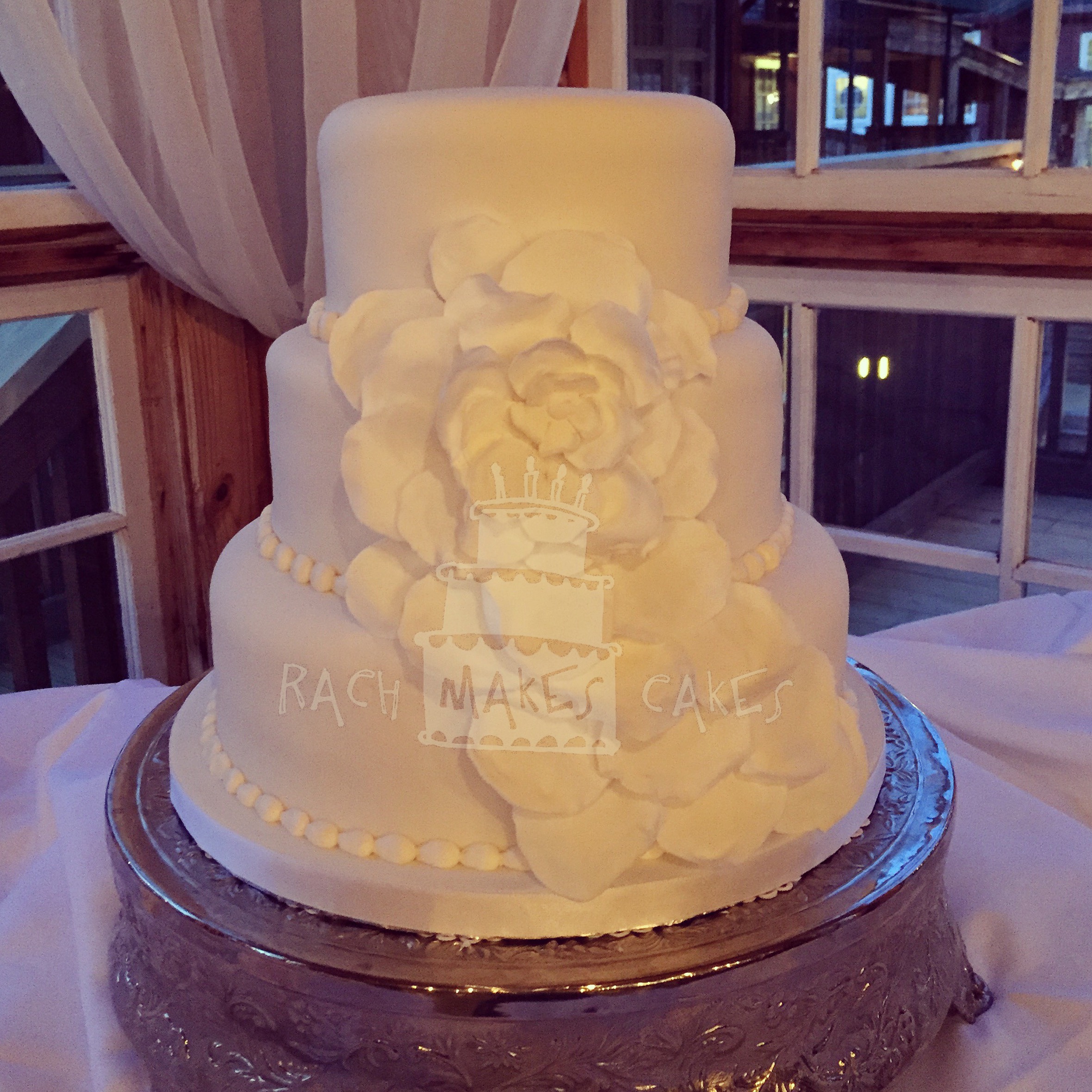 Guests at their reception were probably surprised to see that the actual cake was “confetti” – a fluffy vanilla cake with sprinkles throughout the cake and icing.