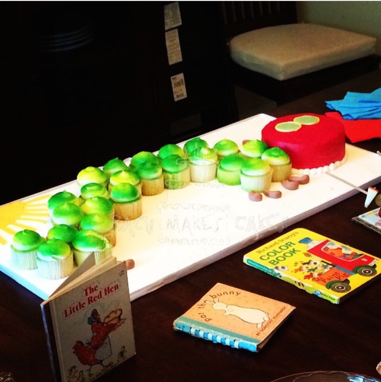 November 13, 2014 By rachmakescakes Very Hungry Caterpillar Cupcakes Adrienne hosted a book-themed baby shower for her sister. Check out the cupcake-cake inspired by the book, The Very Hungry Caterpillar. Tweet Pin It