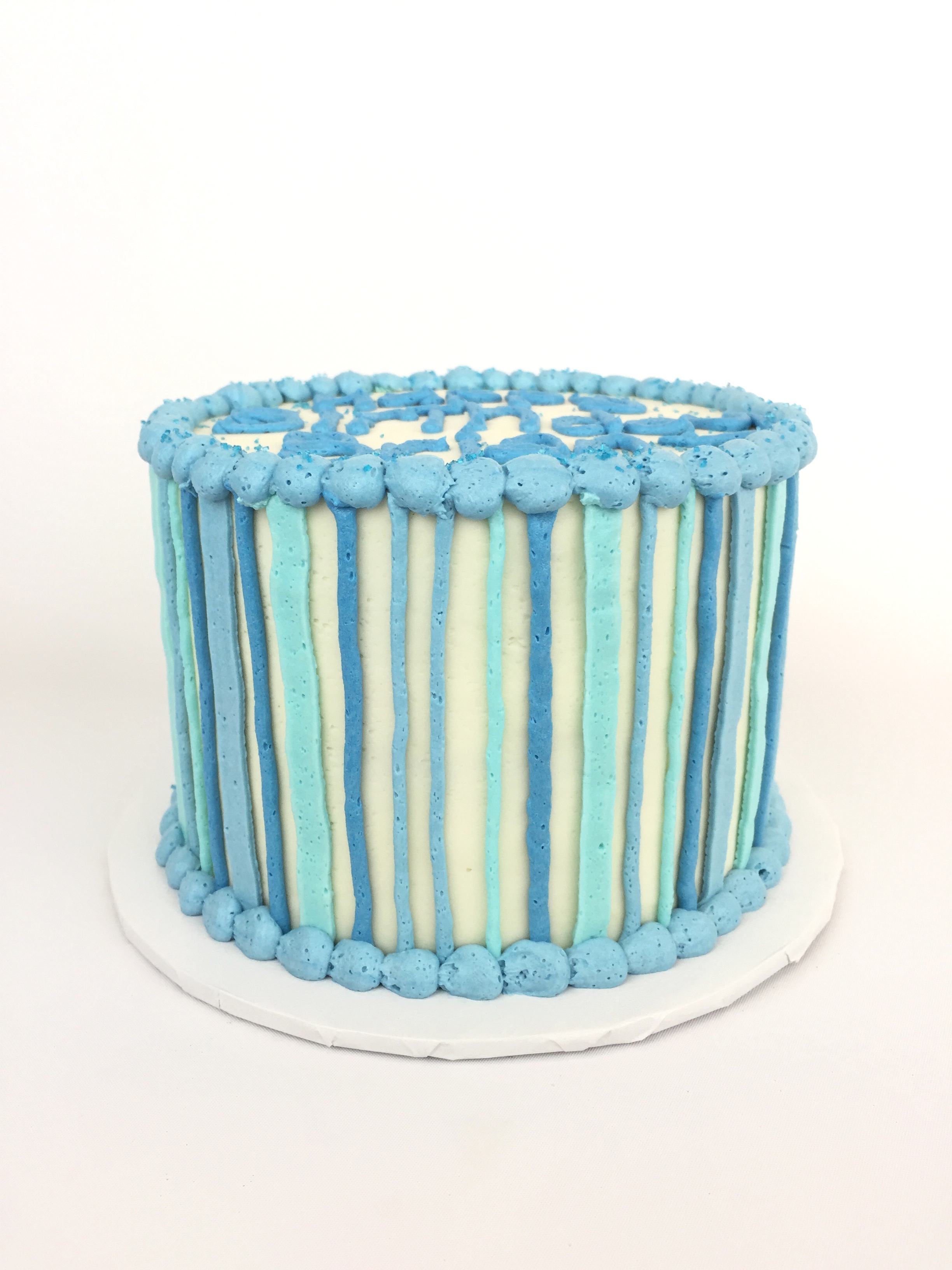 March 13, 2017 By rachmakescakes Stripes! I always try to add something “special” to a simple birthday cake. Since Brian’s favorite color is blue, I added some free-hand buttercream stripes to the side of his cake. Tweet Pin It