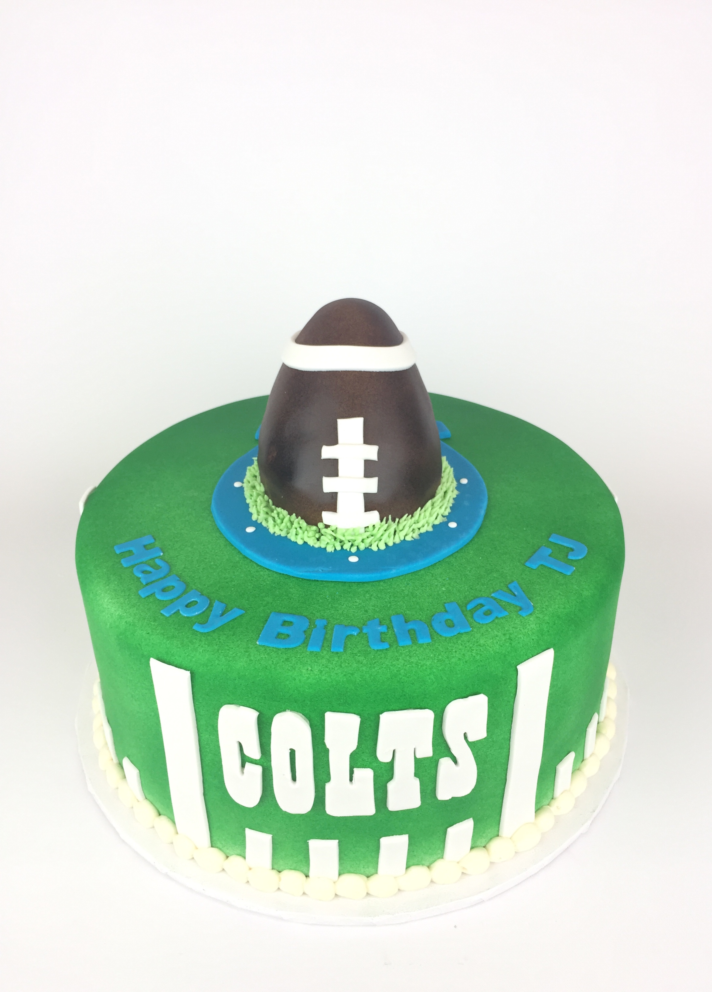 March 23, 2017 By rachmakescakes Indianapolis Colts Cake This Indianapolis Colts birthday cake was topped with a football made of rice cereal treats. Tweet Pin It