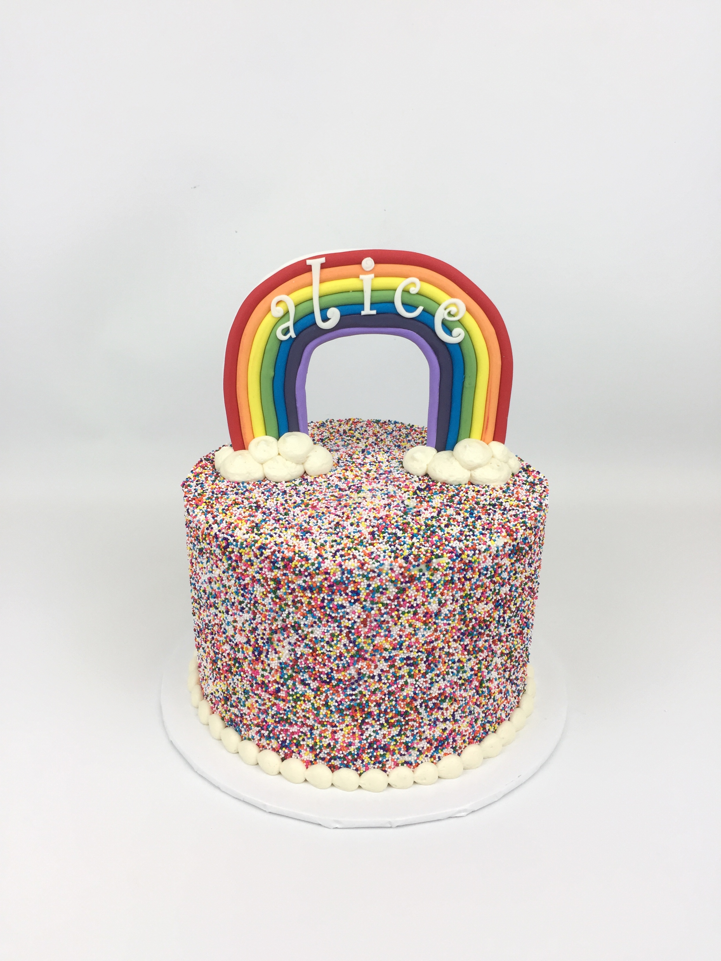 June 12, 2017 By rachmakescakes Rainbow Sprinkle Cake This rainbow cake was the centerpiece for Alice’s My Little Pony party. Her mom topped it with a small pony toy before the party started. Tweet Pin It