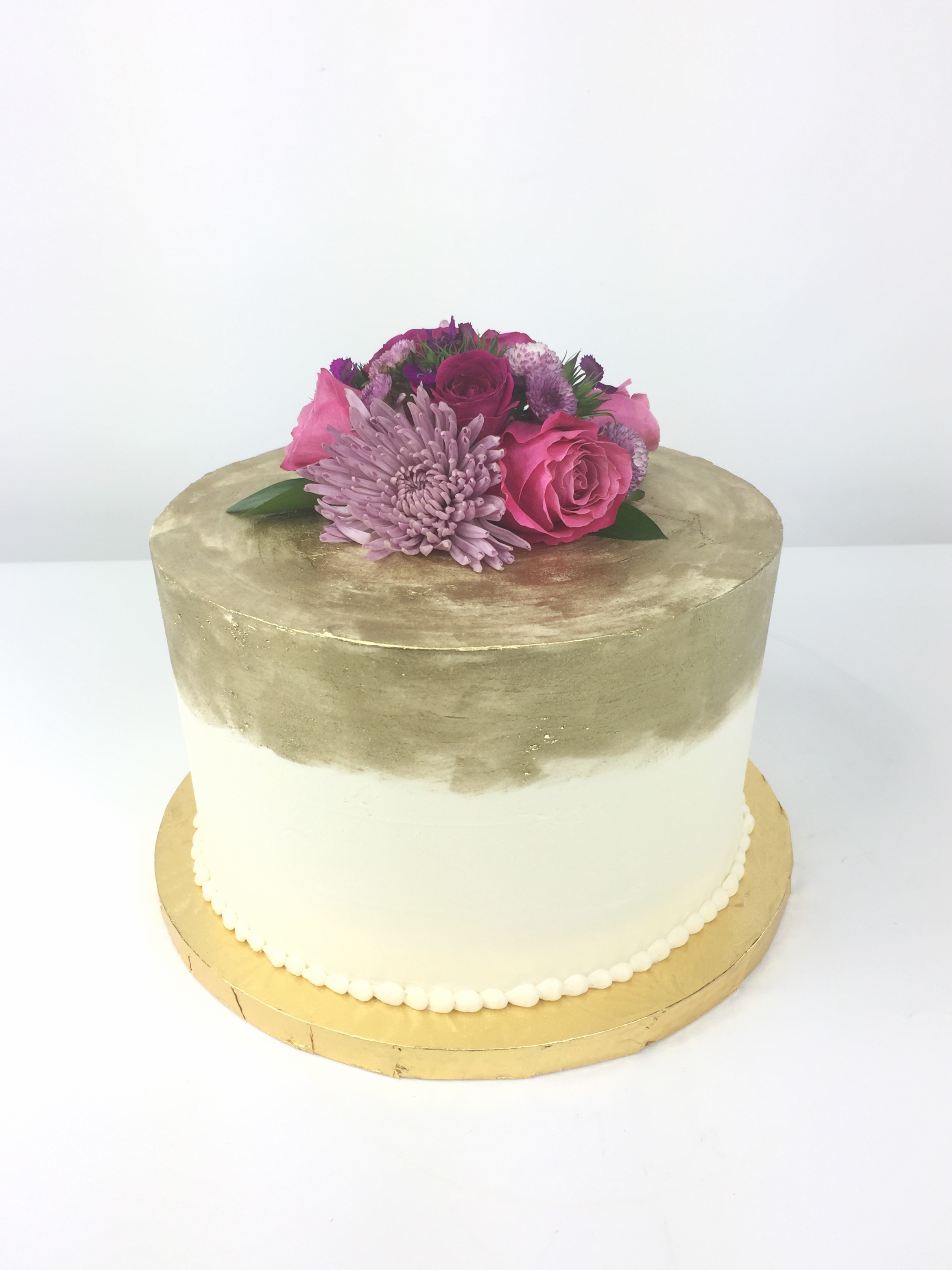September 12, 2017 By rachmakescakes Gold Cake with Fresh Flowers I love how the hand painted gold on this cake compliments the fresh flowers. Tweet Pin It