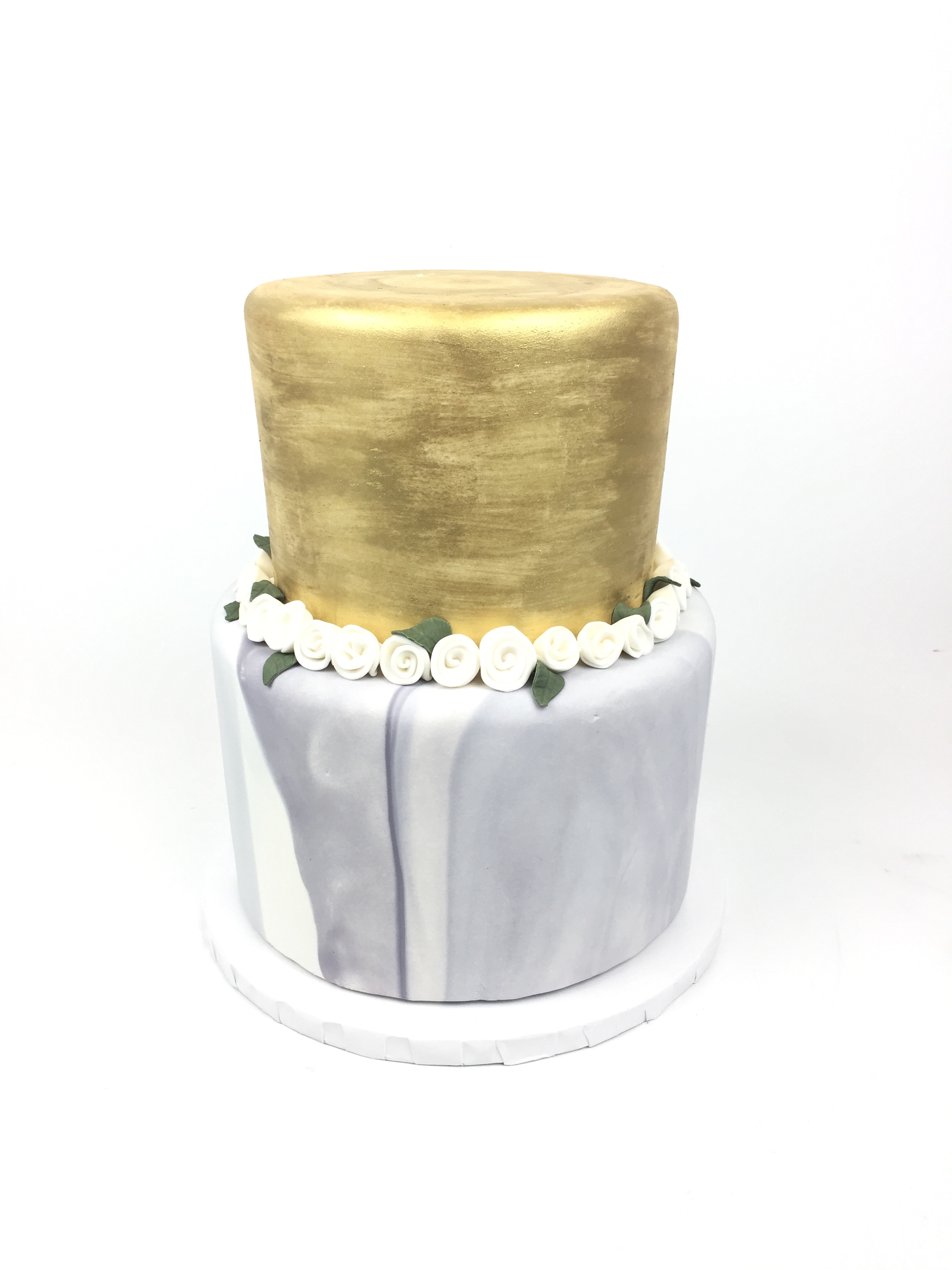 December 19, 2017 By rachmakescakes Gold & Marble Cake Tiny white rosettes were the perfect accent for this gold and white marble cake. Tweet Pin It