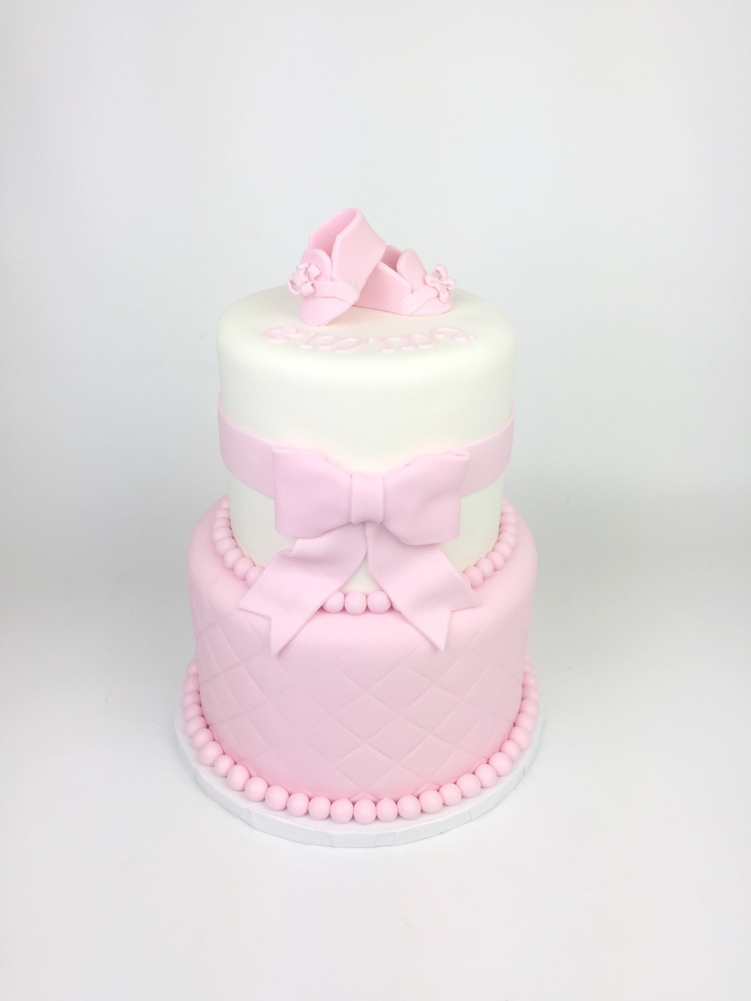 July 18, 2018 By rachmakescakes Pink & White Baby Shower Cake This pink and white baby shower cake is just too cute! Tweet Pin It