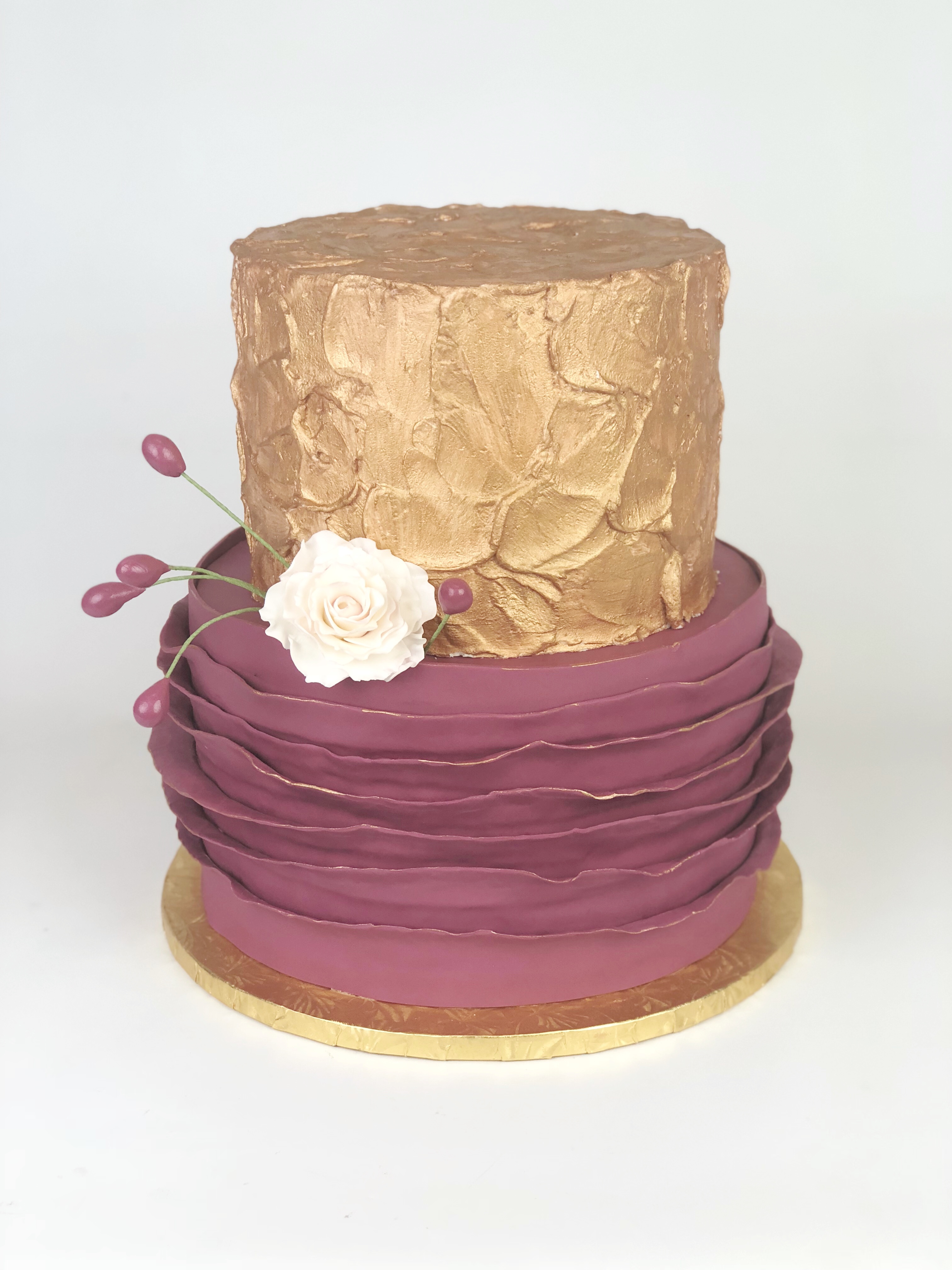 And to be 100% honest, it was SUPER easy! I just textured the buttercream with my offset spatula, chilled the cake until the buttercream was firm to the touch and then painted it using Rolkem gold mixed with vodka.