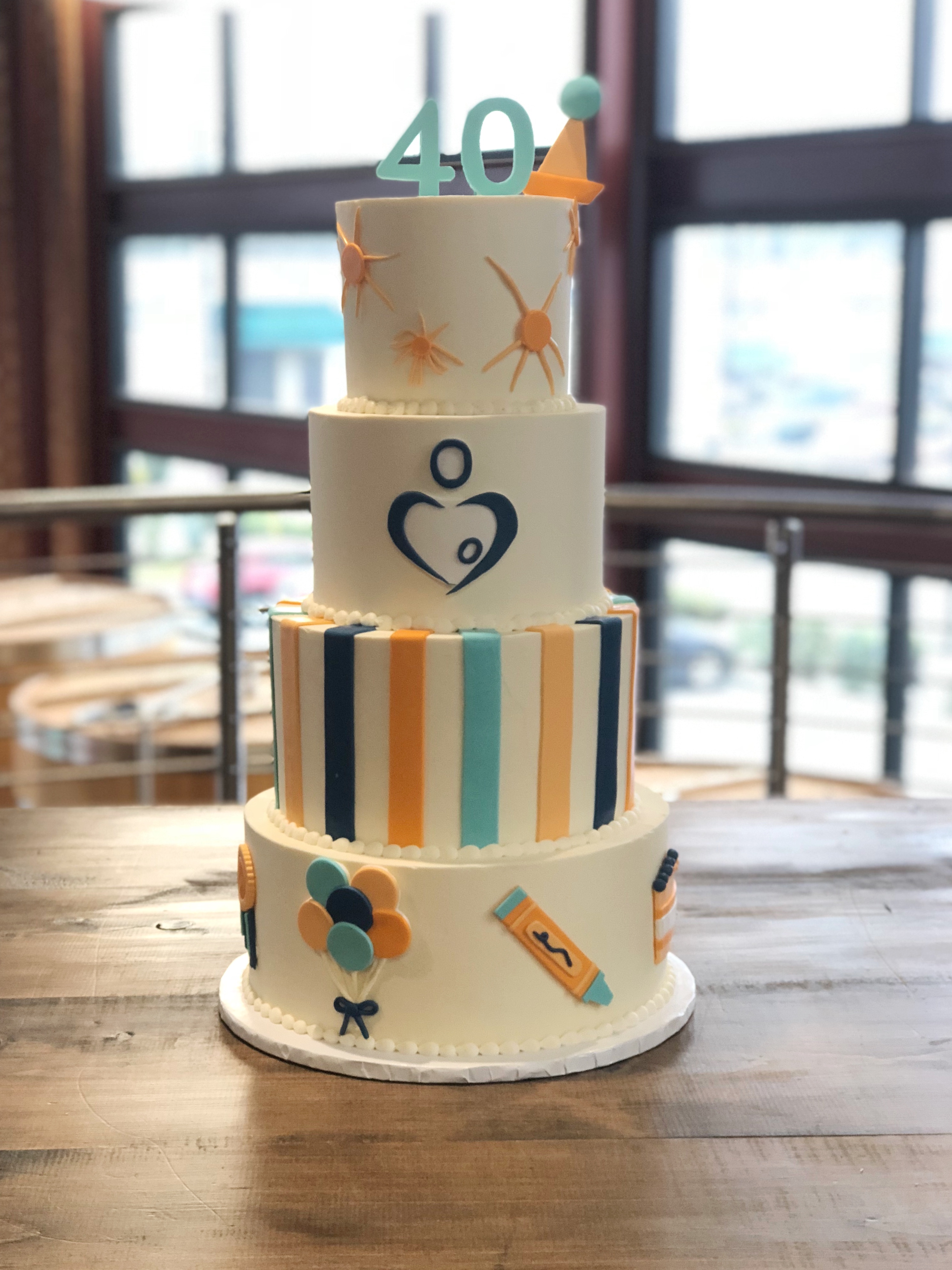 Quality Care for Children (QCC) has been doing fantastic work for Georgia’s children for over 40 years now. A local artist, Sarah Neuburger, designed all of the marketing/promo materials for the party and I made fondant versions of those icons to decorate the cake.